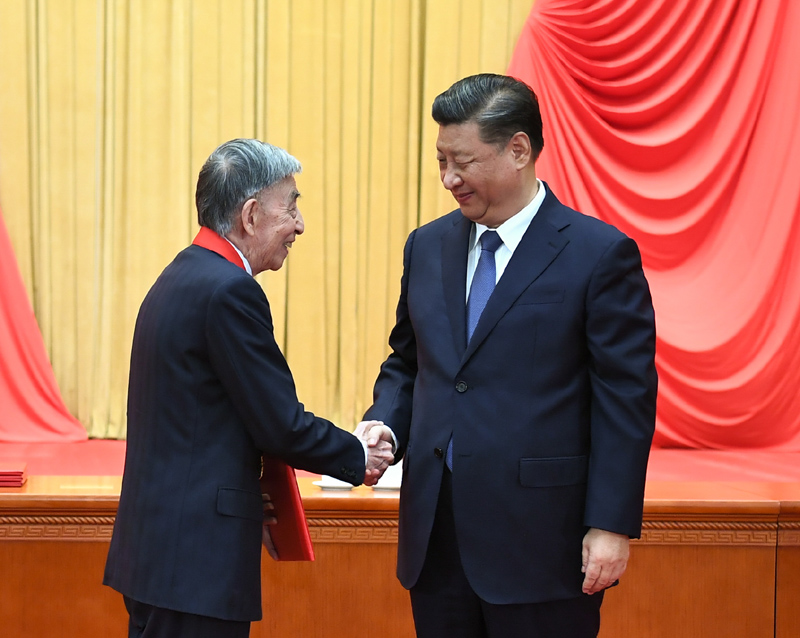 11月3日,2020年度國家科學(xué)技術(shù)獎勵大會在北京人民大會堂隆重舉行。中共中央總書記、國家主席、中央軍委主席習(xí)近平向獲得2020年度國家最高科學(xué)技術(shù)獎的中國航空工業(yè)集團(tuán)有限公司顧誦芬院士(右)和清華大學(xué)王大中院士(左)頒獎。圖片來源:新華網(wǎng)