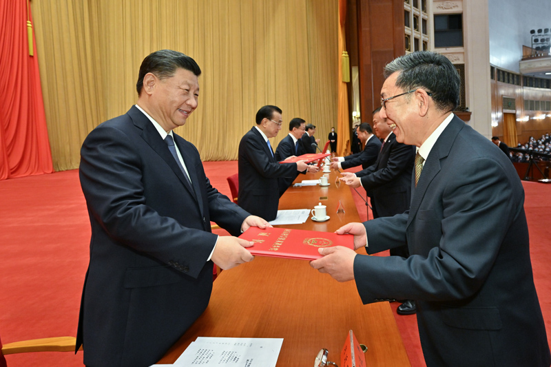 習(xí)近平出席大會并為最高獎獲得者等頒獎