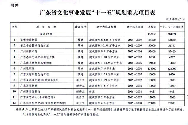 附件:廣東省文化事業(yè)發(fā)展“十一五”規(guī)劃重大項(xiàng)目表