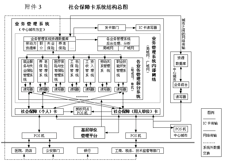 ?。ǘ┫到y(tǒng)邏輯結(jié)構(gòu) 社會(huì)保障信息系統(tǒng)在縱向上有省、地市和縣三級(jí),橫向上在省、地市級(jí)是以 基金管理子系統(tǒng)、網(wǎng)絡(luò)管理子系統(tǒng)、數(shù)據(jù)管理子系統(tǒng)為核心,并與三大業(yè)務(wù)系統(tǒng) 相連接。另外,還有面向社會(huì)公共信息服務(wù)子系統(tǒng)。在縣級(jí)重點(diǎn)是建設(shè)各個(gè)業(yè)務(wù) 子系統(tǒng),并通過(guò)網(wǎng)絡(luò)中心與地市級(jí)連接。系統(tǒng)的邏輯結(jié)構(gòu)如圖二所示。 |