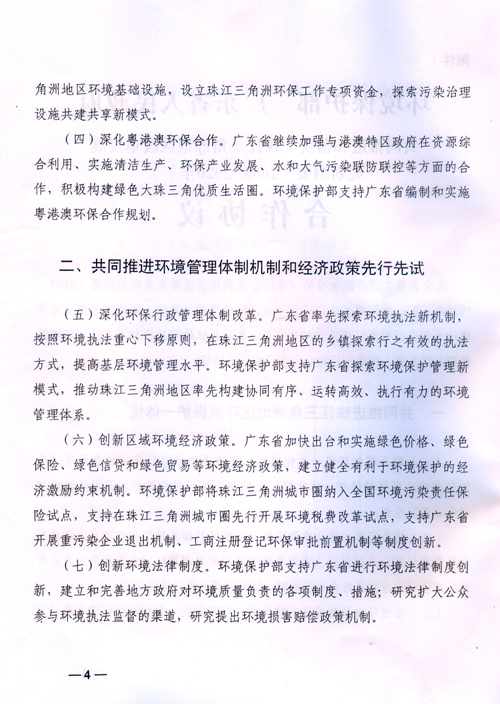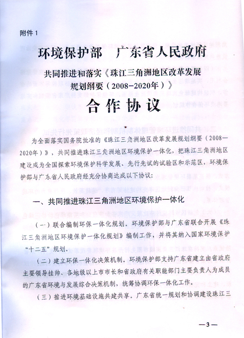 附件:1.環(huán)境保護部廣東省人民政府共同推進和落實《珠江三角洲地區(qū)改革發(fā)展規(guī)劃綱要(2008-2020年)》合作協(xié)議