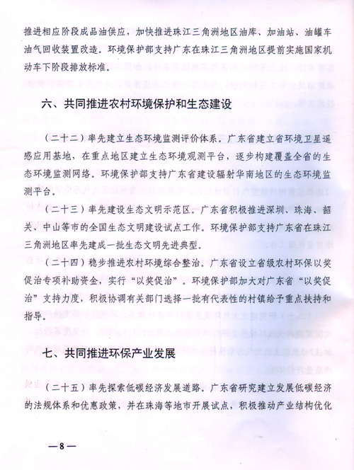 環(huán)境保護部廣東省人民政府共同推進和落實《珠江三角洲地區(qū)改革發(fā)展規(guī)劃綱要(2008-2020年)》合作協(xié)議