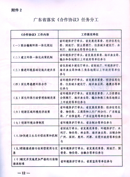 現(xiàn)將《環(huán)境保護部廣東省人民政府共同推進和落實〈珠江三角洲地區(qū)改革發(fā)展規(guī)劃綱要(2008-2020年)〉合作協(xié)議》(以下簡稱《合作協(xié)議》)及我省落實協(xié)議任務分工印發(fā)給你們,請認真貫徹落實。