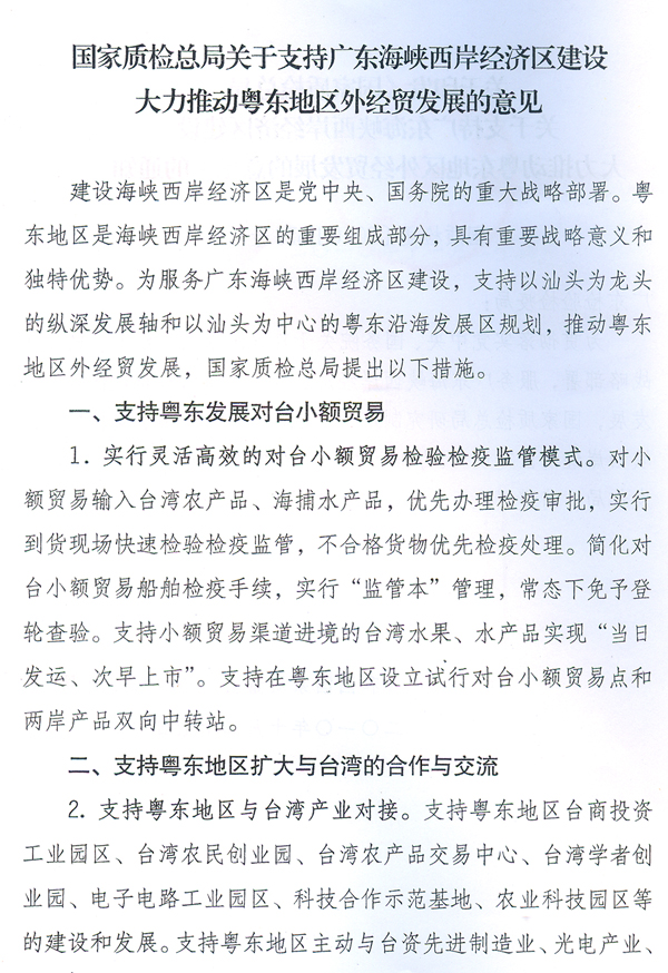 轉(zhuǎn)發(fā)國家質(zhì)檢總局關(guān)于支持廣東海峽西岸 經(jīng)濟(jì)區(qū)建設(shè)大力推動粵東地區(qū) 外經(jīng)貿(mào)發(fā)展意見的通知