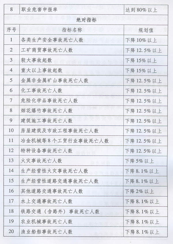 印發(fā)廣東省安全生產(chǎn)“十二五”規(guī)劃的通知 ? 各地級以上市人民政府,各縣(市、區(qū))人民政府,省政府各部門、各直屬機構(gòu): 《廣東省安全生產(chǎn)“十二五”規(guī)劃》已經(jīng)省人民政府同意,現(xiàn)印發(fā)給你們,請認真貫徹執(zhí)行。執(zhí)行中遇到的問題,請徑向省安全監(jiān)管局、發(fā)展改革委反映。 ? ? ? ? ? 廣東省人民政府辦公廳 二○一一年六月十三日 ? ? ? ? ? 廣東省安全生產(chǎn)“十二五”規(guī)劃 ? ? 目 錄 ? 前 言 …………………………………………………………………………(1) 一、發(fā)展條件 …………………………………………………………………(2) ?。ㄒ唬┌l(fā)展基礎(chǔ)? ………………………………………………………………(2) ?。ǘ┌l(fā)展環(huán)境? ? ………………………………………………………………(4) 二、總體要求 ………………………………………………………………(6) ?。ㄒ唬┲笇?dǎo)思想 ? ?………………………………………………………………(6) ?。ǘ┮?guī)劃目標 ………………………………………………………………(7) 三、主要任務(wù) …………………………………………………………………(9) ?。ㄒ唬娀攸c行業(yè)(領(lǐng)域)管理 ……………………………………………(9) ?。ǘ┘訌娐殬I(yè)危害監(jiān)督管理…………………………………………………(14) (三)完善應(yīng)急救援體系建設(shè)…………………………………………………(15) ?。ㄋ模┐龠M企業(yè)落實主體責任…………………………………………………(16) (五)提升監(jiān)管監(jiān)察執(zhí)法能力…………………………………………………(16) ?。┐罅嵤┛萍寂d安戰(zhàn)略…………………………………………………(18) (七)扎實推進安全文化建設(shè)…………………………………………………(19) 四、重點工程 …………………………………………………………………(20) (一)監(jiān)管監(jiān)察執(zhí)法能力建設(shè)工程……………………………………………(20) ?。ǘ┘夹g(shù)支撐體系建設(shè)工程…………………………………………………(20) ?。ㄈ?yīng)急救援體系建設(shè)工程…………………………………………………(21) (四)事故隱患治理工程………………………………………………………(21) ?。ㄎ澹┞殬I(yè)危害防控工程………………………………………………………(22) (六)安全文化與教育培訓(xùn)建設(shè)工程…………………………………………(22) ?。ㄆ撸┦『I纤丫戎笓]平臺與基地建設(shè)工程…………………………………(22) 五、保障措施 …………………………………………………………………(22) ?。ㄒ唬﹫猿职踩a(chǎn)與經(jīng)濟社會協(xié)調(diào)發(fā)展……………………………………(22) ?。ǘ┮?guī)范安全生產(chǎn)法治秩序…………………………………………………(23) (三)嚴格目標考核與責任追究………………………………………………(24) ?。ㄋ模┩晟瓢踩a(chǎn)投入機制…………………………………………………(25) ?。ㄎ澹┘訌娚鐣O(jiān)督和輿論監(jiān)督………………………………………………(25) ?。娀?guī)劃實施與評估考核………………………………………………(26) ? 前 言 ? 廣東是我國改革開放的前沿陣地,是全國探索科學(xué)發(fā)展模式的試驗區(qū)和深化改革的先行區(qū)?!笆濉睍r期是廣東全面建設(shè)小康社會的關(guān)鍵時期,是深化改革開放、加快轉(zhuǎn)變經(jīng)濟發(fā)展方式的攻堅時期,促進安全生產(chǎn)工作全面發(fā)展、實現(xiàn)安全生產(chǎn)狀況根本好轉(zhuǎn)至關(guān)重要。 省委、省政府歷來高度重視安全生產(chǎn)工作。2006年以來,全省各級安全生產(chǎn)工作部門圍繞省委、省政府各項工作部署和《廣東省安全生產(chǎn)“十一五”規(guī)劃》確定的目標和任務(wù),全力推進安全生產(chǎn)工作,全省安全生產(chǎn)形勢明顯好轉(zhuǎn)?!笆濉睍r期,隨著我省經(jīng)濟結(jié)構(gòu)戰(zhàn)略性調(diào)整和經(jīng)濟發(fā)展方式加快轉(zhuǎn)變,安全生產(chǎn)工作將面臨新形勢、新任務(wù)和新特點??茖W(xué)編制和有效實施安全生產(chǎn)“十二五”規(guī)劃,對于堅持科學(xué)發(fā)展,構(gòu)建和諧社會,促進安全生產(chǎn)狀況根本好轉(zhuǎn),推動安全生產(chǎn)與經(jīng)濟社會協(xié)調(diào)發(fā)展具有十分重大的意義。 本規(guī)劃根據(jù)《廣東省國民經(jīng)濟和社會發(fā)展第十二個五年規(guī)劃綱要》編制,是廣東省“十二五”重點專項規(guī)劃,是全省安全生產(chǎn)工作的戰(zhàn)略性、綱領(lǐng)性、綜合性規(guī)劃,是各地政府、各有關(guān)部門和企業(yè)履行安全生產(chǎn)職責的重要依據(jù)。 一、發(fā)展條件 ?。ㄒ唬┌l(fā)展基礎(chǔ)。 “十一五”時期,我省的安全生產(chǎn)工作取得重大進展,安全生產(chǎn)形勢明顯好轉(zhuǎn),為實現(xiàn)安全生產(chǎn)狀況根本好轉(zhuǎn)奠定了堅實基礎(chǔ)。 1.“十一五”規(guī)劃目標全面完成。2006-2010年,全省生產(chǎn)安全事故四項主要指標均有較大幅度下降,重特大事故發(fā)生起數(shù)、發(fā)生頻率、死亡人數(shù)等指標得到有效控制,