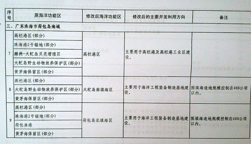 ? 關(guān)于修改廣東省海洋功能區(qū)劃的通知