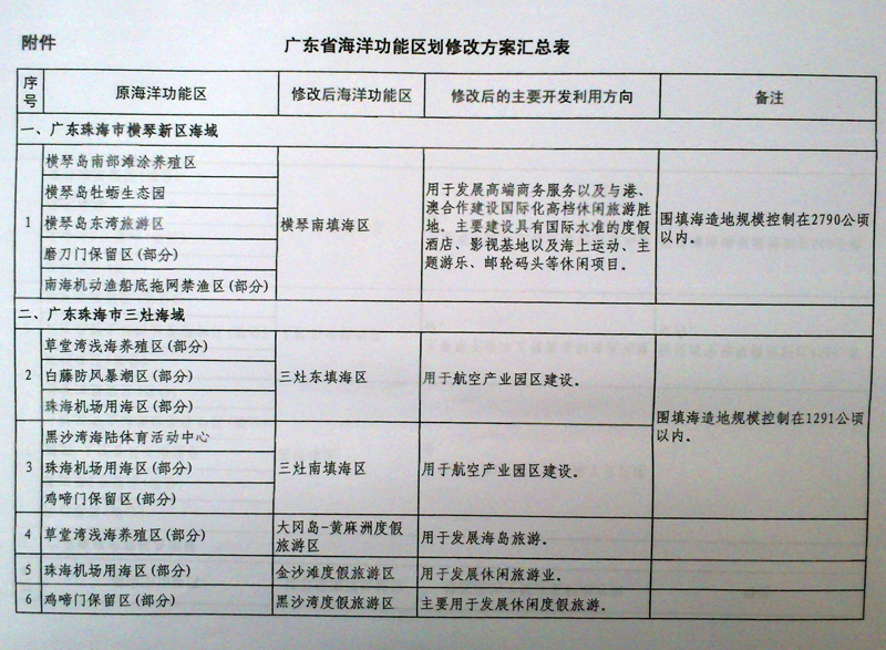 附件:廣東省海洋功能區(qū)劃修改方案匯總表