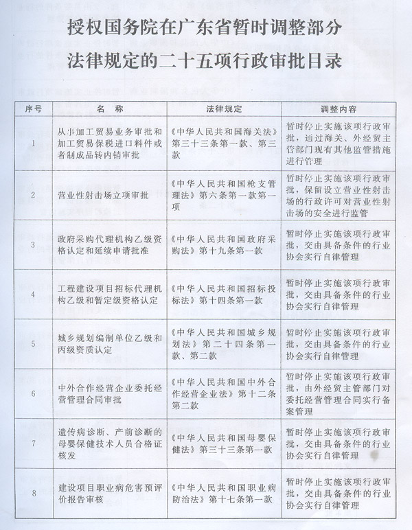廣東省暫時(shí)調(diào)整部分法律規(guī)定的