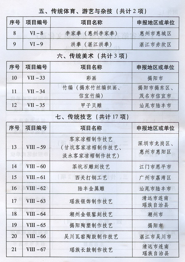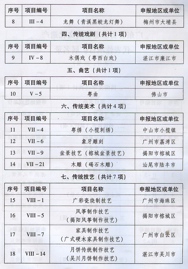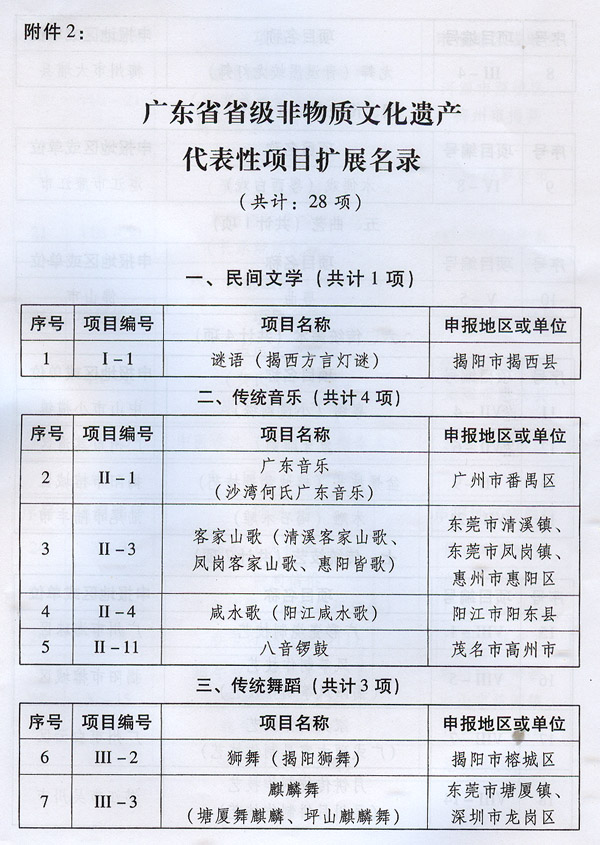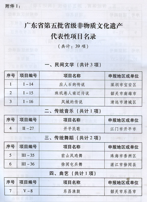? ? 廣東省人民政府關(guān)于批準并公布廣東省 第五批省級非物質(zhì)文化遺產(chǎn)名錄的通知