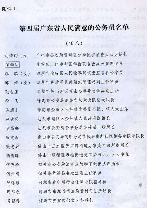 附件:1.第四屆廣東省人民滿意的公務(wù)員名單(46名)