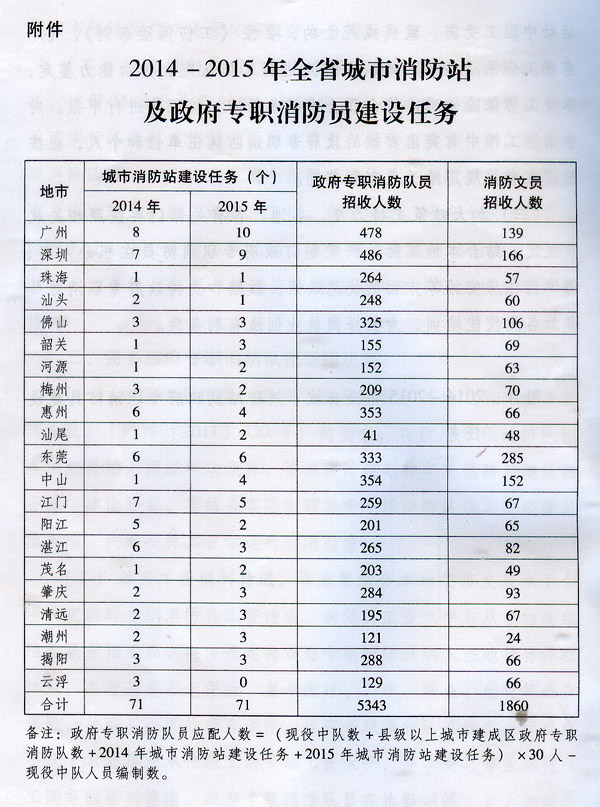 附件:2014-2015年全省城市消防站及政府專職消防員建設(shè)任務(wù)