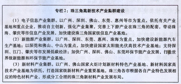 ——打造高新技術(shù)產(chǎn)業(yè)集群。積極落實《廣東省高新區(qū)創(chuàng)新型產(chǎn)業(yè)集群建設(shè)方案》(粵科函高字〔2012〕893號),加快建設(shè)深圳下一代互聯(lián)網(wǎng)、惠州智能終端與云計算應(yīng)用、中山健康科技等國家創(chuàng)新型產(chǎn)業(yè)集群建設(shè)試點,培育和建設(shè)廣州北斗衛(wèi)星導(dǎo)航、珠海軟件及集成電路設(shè)計等省級創(chuàng)新型產(chǎn)業(yè)集群,推進各高新園區(qū)形成優(yōu)勢特色產(chǎn)業(yè)。具體詳見專欄2。
