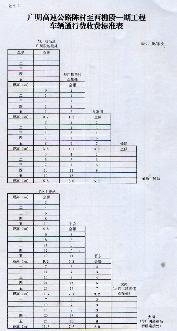 2.廣明高速公路陳村至西樵段一期工程車輛通行費(fèi)收費(fèi)標(biāo)準(zhǔn)表 ? 廣東省人民政府 2014年12月23日 ? ? ?