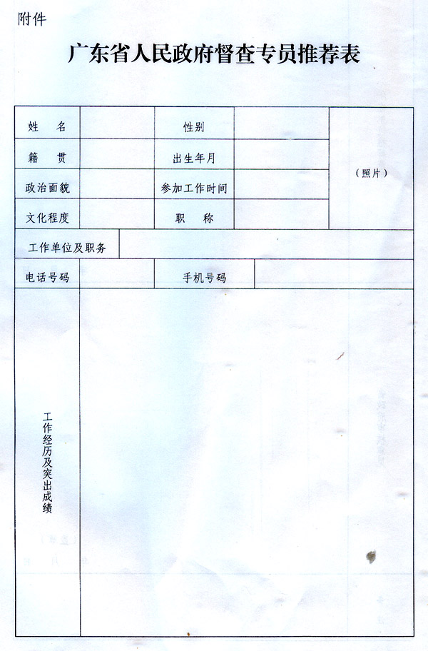 根據(jù)《廣東省人民政府辦公廳關(guān)于印發(fā)廣東省人民政府督查專員管理暫行辦法的通知》(粵府辦〔2015〕16號(hào)),省政府決定在部分省直部門中選聘第一批省政府督查專員。有關(guān)事項(xiàng)通知如下: 一、資格條件 ?。ㄒ唬┱瘟?chǎng)堅(jiān)定,全局意識(shí)強(qiáng); ?。ǘ└矣趫?jiān)持原則,善抓督查調(diào)研、協(xié)調(diào)落實(shí); (三)政策業(yè)務(wù)熟悉,經(jīng)驗(yàn)豐富; (四)熱心政府督查工作; ?。ㄎ澹┰瓌t上為58周歲以下巡視員、副巡視員。 ?。ㄒ唬└鞑块T擇優(yōu)推薦上報(bào)1名符合資格條件的省政府督查專員人選; (二)省政府督查室對(duì)各部門上報(bào)的人選情況進(jìn)行匯總初審后,報(bào)省政府秘書長(zhǎng)審核; ?。ㄈ⑹≌貢L(zhǎng)審核通過(guò)的人選,依次報(bào)請(qǐng)省政府分管領(lǐng)導(dǎo)審批和主要領(lǐng)導(dǎo)審定; ?。ㄋ模┱桨l(fā)文公布第一批省政府督查專員名單,并頒發(fā)聘書; ?。ㄎ澹┦≌讲槭矣谄溉魏蟮?5個(gè)工作日內(nèi),將聘任文件等資料抄送督查專員所在單位人事部門備案。 建立省政府督查專員制度是進(jìn)一步構(gòu)建“大督查”工作格局,推動(dòng)省委、省政府決策部署落實(shí)的重要舉措,各單位要高度重視,認(rèn)真做好第一批省政府督查專員推薦工作。推薦人選名單及《省政府督查專員推薦表》(見(jiàn)附件,一式兩份)請(qǐng)于3月27日前送省政府督查室。 ? ? 省府辦公廳 2015年3月17日 ? ?。?lián)系人:曾燦,聯(lián)系電話:83138413,傳真:83132739) ? ?