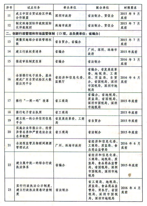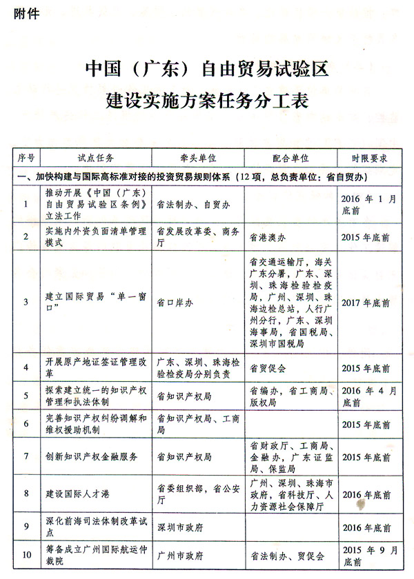 附件:中國(廣東)自由貿(mào)易試驗區(qū)建設(shè)實施方案任務(wù)分工表