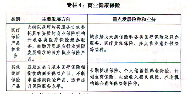 (四)積極發(fā)展商業(yè)健康保險(xiǎn)。 13.推廣多樣化健康保險(xiǎn)服務(wù)。鼓勵(lì)發(fā)展與基本醫(yī)療保險(xiǎn)相銜接的商業(yè)健康保險(xiǎn)產(chǎn)品;鼓勵(lì)開(kāi)發(fā)商業(yè)性長(zhǎng)期護(hù)理保險(xiǎn)、個(gè)人儲(chǔ)蓄性養(yǎng)老保險(xiǎn)、計(jì)劃生育保險(xiǎn)、失能收入損失保險(xiǎn)、養(yǎng)老機(jī)構(gòu)綜合責(zé)任保險(xiǎn)等服務(wù)產(chǎn)品和醫(yī)療責(zé)任保險(xiǎn)、多點(diǎn)執(zhí)業(yè)意外保險(xiǎn)等執(zhí)業(yè)保險(xiǎn)產(chǎn)品。支持商業(yè)保險(xiǎn)機(jī)構(gòu)承辦城鄉(xiāng)居民大病保險(xiǎn),完善推進(jìn)城鄉(xiāng)居民大病保險(xiǎn)政策。研究并適時(shí)出臺(tái)我省住房反向抵押養(yǎng)老保險(xiǎn)試行政策。有條件的地區(qū),可以按照職工自愿原則,允許使用個(gè)人社保賬戶一定比例余額購(gòu)買補(bǔ)充醫(yī)療保險(xiǎn)。(廣東保監(jiān)局、省人力資源社會(huì)保障廳負(fù)責(zé),省金融辦、衛(wèi)生計(jì)生委、中醫(yī)藥局參與)