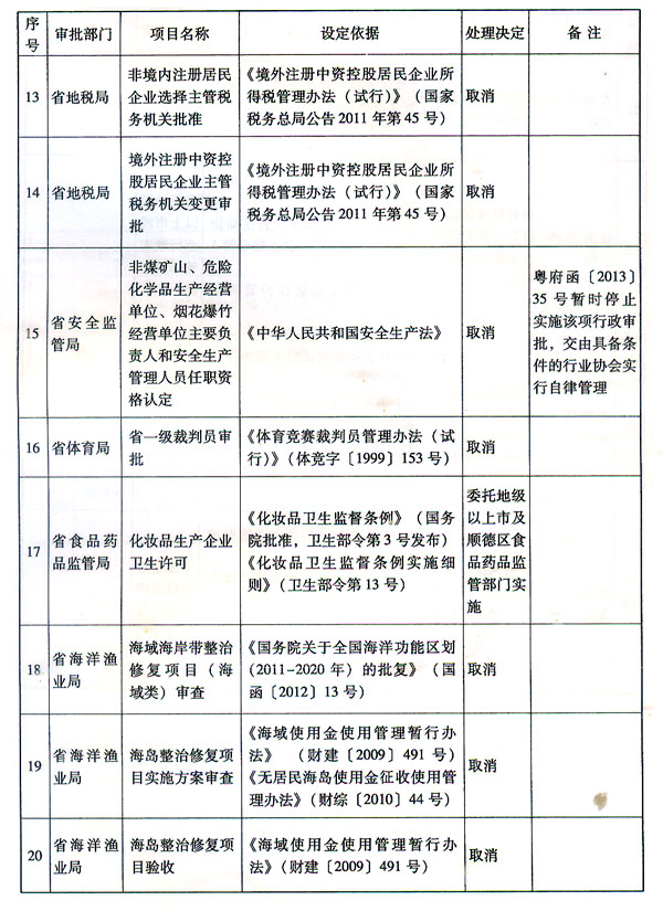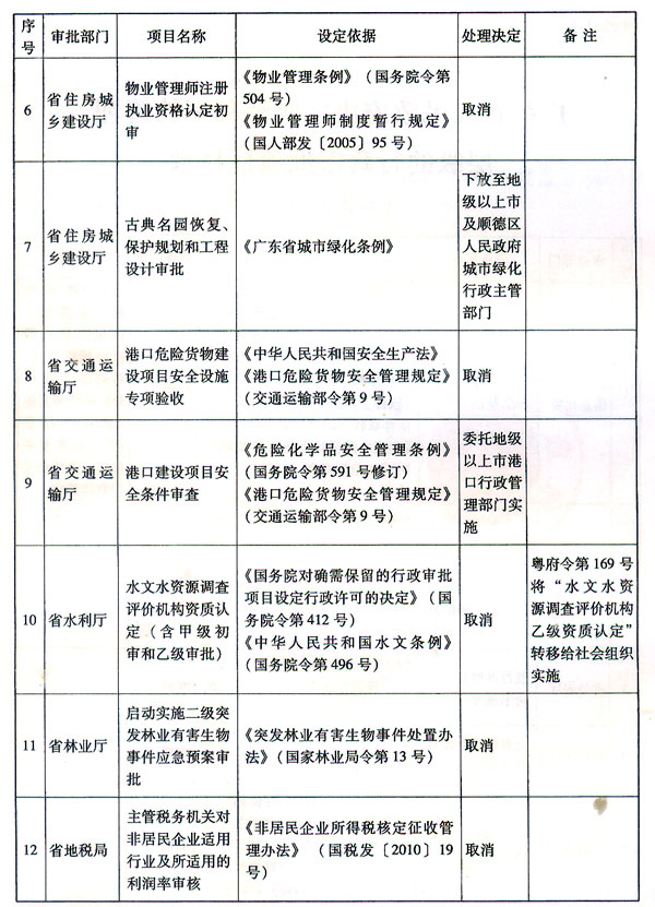 ? 廣東省人民政府關于取消和調整一批 行政審批項目等事項的決定