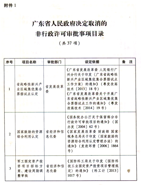 附件:1.廣東省人民政府決定取消的非行政許可審批事項(xiàng)目錄