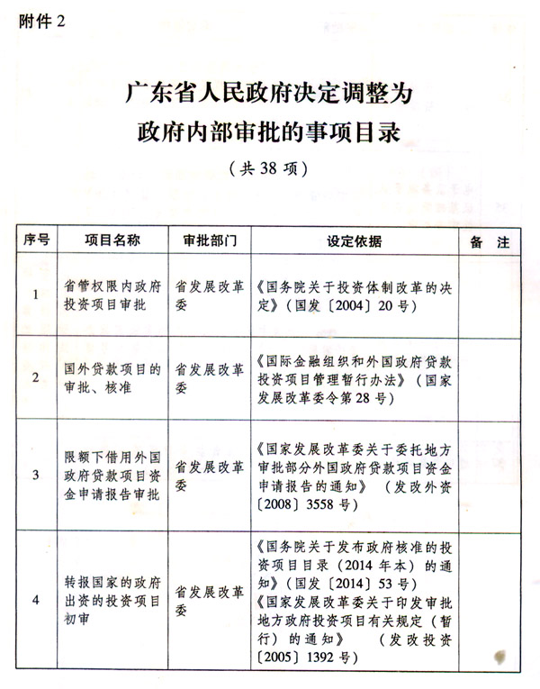 2.廣東省人民政府決定調(diào)整為政府內(nèi)部審批的事項(xiàng)目錄