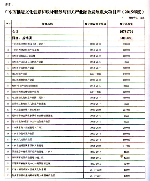 附件:廣東省推進(jìn)文化創(chuàng)意和設(shè)計(jì)服務(wù)與相關(guān)產(chǎn)業(yè)融合發(fā)展重大項(xiàng)目庫(2015年度)