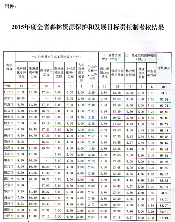 ? 廣東省人民政府辦公廳關(guān)于2015年度 全省森林資源保護和發(fā)展目標 責任制考核結(jié)果的通報