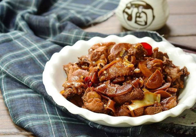 酸筍燜鴨是廣東韶關(guān)一帶的漢族風(fēng)味名菜,屬于粵菜系。廣東省南雄市山清水秀,養(yǎng)的鴨子很出名,肉質(zhì)很豐厚,口感柔軟。我們吃的酸筍燜鴨,是用新鮮鴨肉拌著酸筍、辣椒,先炒至金黃,再燜至爛熟,酸筍的酸味和辣椒的辣味都完全滲入到鴨肉里面去了,端上來的時候只聞得一陣香辣的味道,嘗起來更是滋味無窮。酸味拌著辣味,還有鴨肉本身的肉香,一起伴隨著每一下咀嚼而沖開來,盈滿了整個口腔和鼻腔,十分的霸道。因為有酸筍的參加,辣味更甚,只吃了一塊,便覺得胃口大開,忍不住要多吃兩口飯。其實在平常人家,若是做這種酸筍鴨,一定要隔餐吃,才覺得好味的。因為肉汁其實很濃香,材料的味道大多留在了肉汁里,即使?fàn)F再爛,也是不能完全滲透到肉里面,若是隔了一餐來讓它入味,再重新燉熱,則更加能體會酸筍鴨的無窮風(fēng)味。