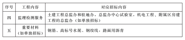 說明:1.以上招標(biāo)內(nèi)容依據(jù)公路建設(shè)項目招標(biāo)審批(核準(zhǔn))意見范圍內(nèi)容進(jìn)行劃分。