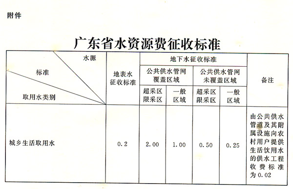 附件:廣東省水資源費(fèi)征收標(biāo)準(zhǔn)
