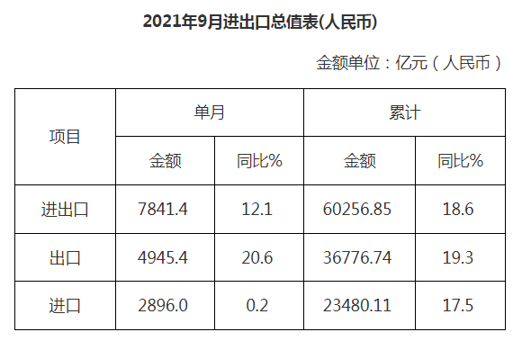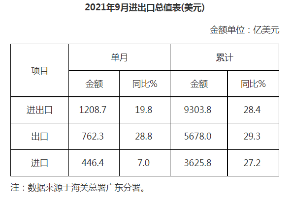廣東省外貿(mào)進(jìn)出口總值表(2021年9月)