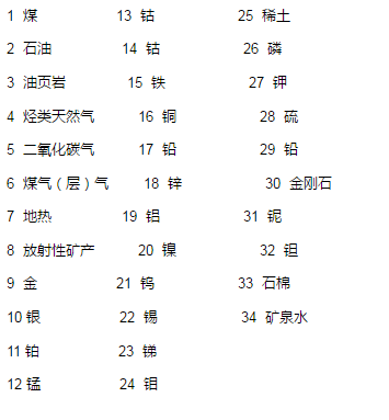 國(guó)務(wù)院地質(zhì)礦產(chǎn)主管部門(mén)審批發(fā)證礦種目錄