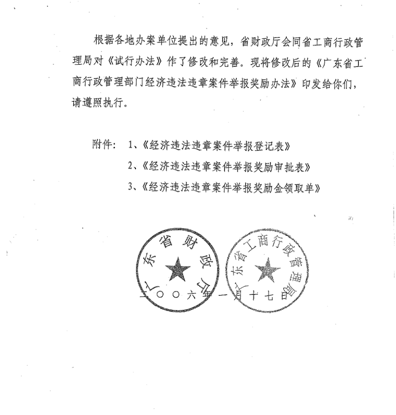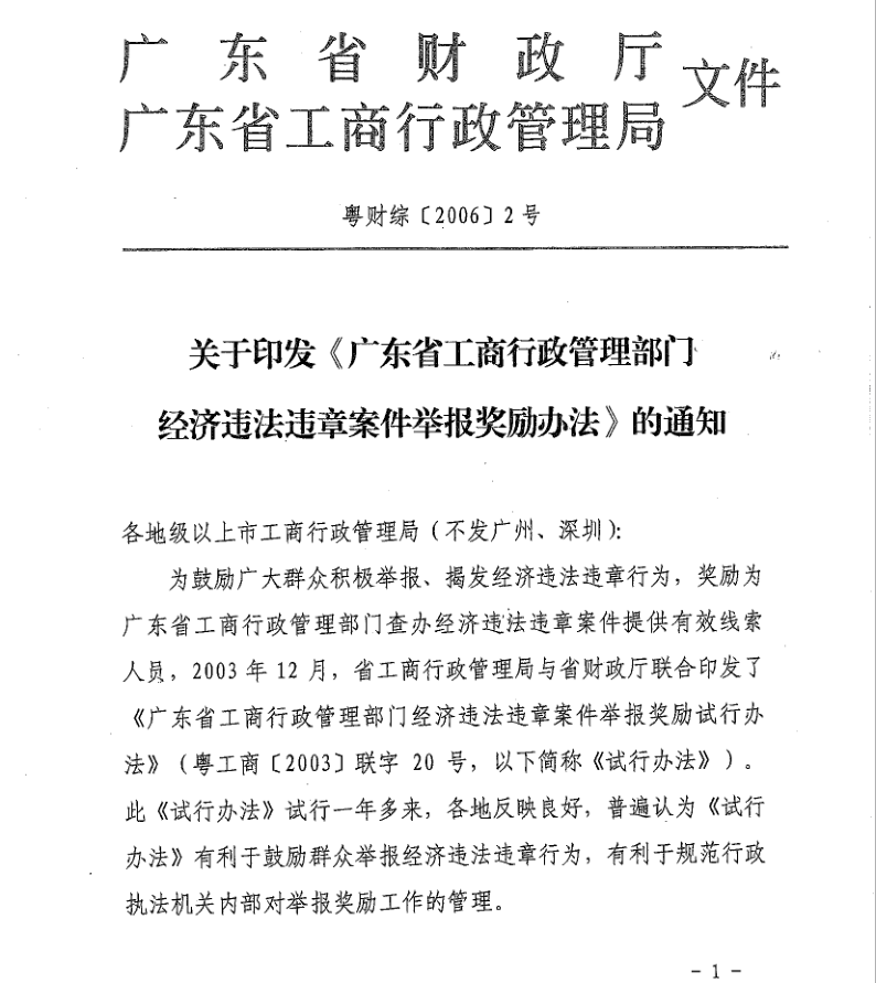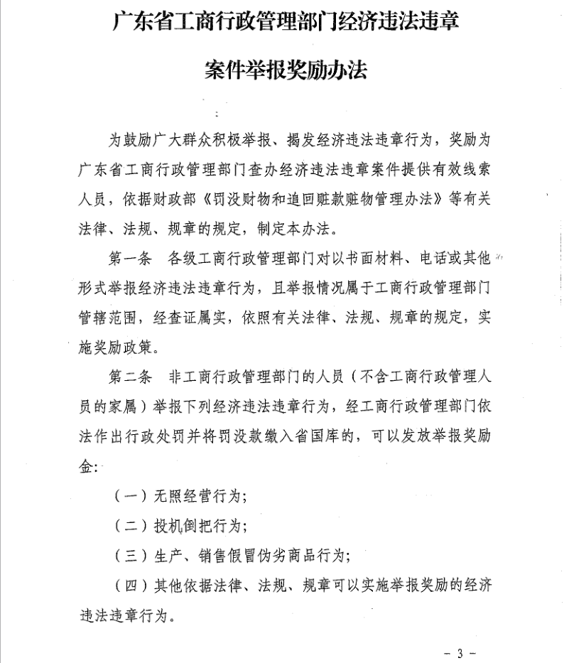廣東省工商行政管理部門經(jīng)濟(jì)違法違章案件舉報獎勵辦法