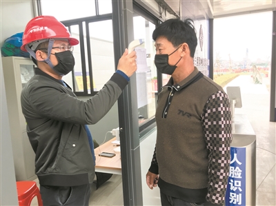 地鐵十二號線第八項目部每日進行體溫測量。圖片來源:廣州日報