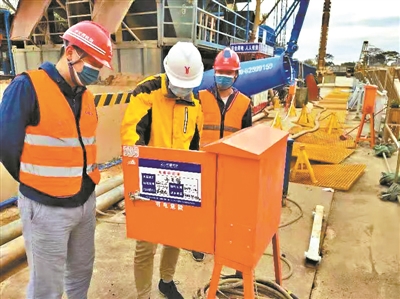 廣州地鐵安全管理人員在施工現(xiàn)場檢查臨電設(shè)備的安全情況。圖片來源:廣州日報