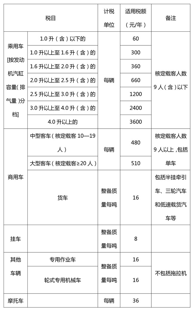 廣東省車(chē)輛車(chē)船稅適用稅額表