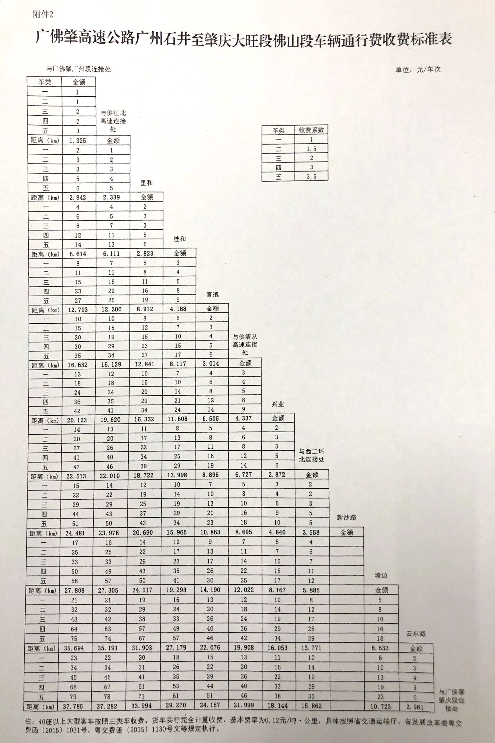 2.廣佛肇高速公路廣州石井至肇慶大旺段佛山段車輛通行費(fèi)收費(fèi)標(biāo)準(zhǔn)表