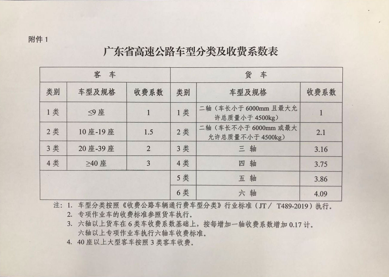 附件:1.廣東省高速公路車型分類及收費(fèi)系數(shù)表